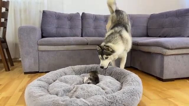 Гигантский хаски и крошечный котенок - 2025 год
