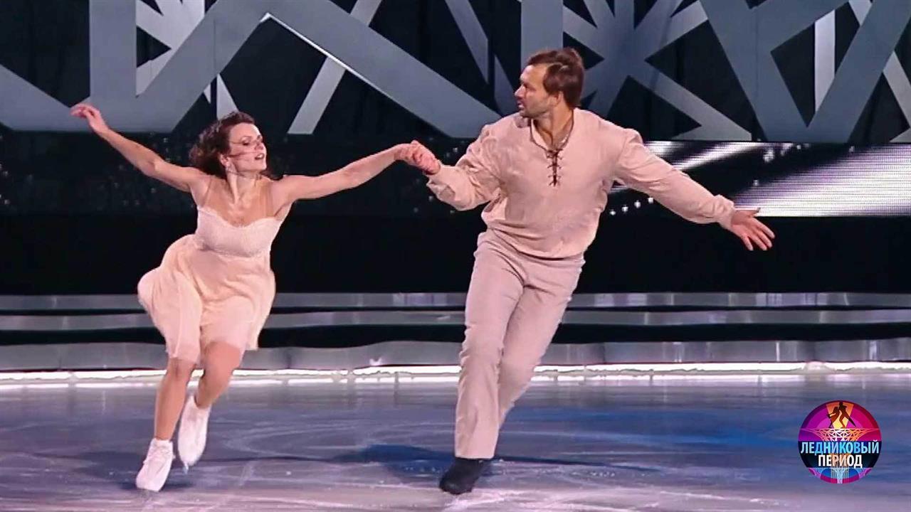 На льду – футболист Дмитрий Сычев и чемпионка мира Мария Петрова. Они выступают под композицию из рок-оперы «Юнона и Авось».
