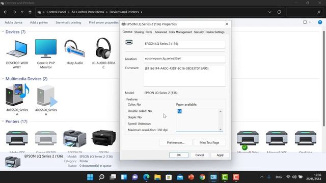สาธิตการ add driver printer epson LQ series2