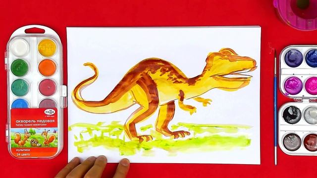 Урок рисования для детей от РыбаКит - рисуем ДИНОЗАВРА акварелью