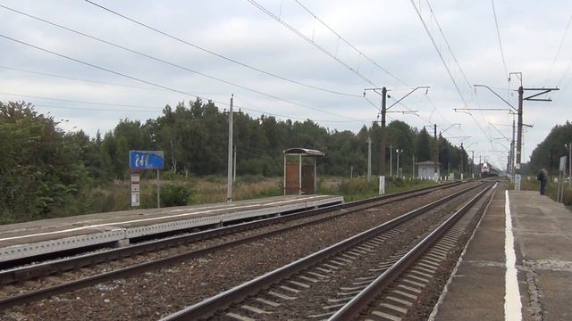 Электровоз ЭП20-030 (приписан ТЧЭ-33 Ожерельe-Сортировочное МОСК) с пассажирским поездом №739 Москва - Брянск следует по перегону Кудринская - Сухиничи-Узловые, о.п. 245 км, Калужская область, Московская железная дорога.16:09 03.09.2017 г.