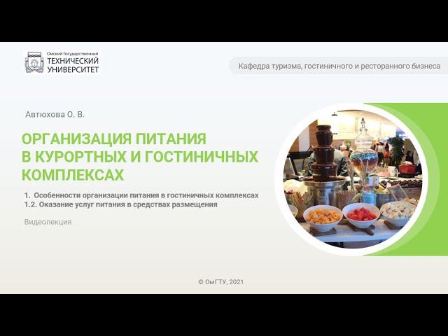Онлайн-курс по дисциплине «Организация питания в курортных и гостиничных комплексах»: https://stepik.org/course/97604. Автор: Автюхова Оксана Владимировна, к.т.н., доцент кафедры «Туризма, гостиничного и ресторанного бизнеса» ОмГТУ