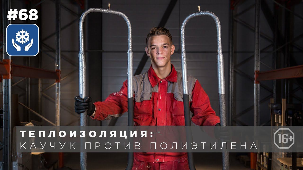 #теплоизоляция #каучук #полиэтилен Эффективность работы любой холодильной системы зависит от того, сколько холода успеет отдать подготовленный хладагент за время его транспортировки по трубопроводу. Чем выше этот показатель, тем ниже эффективность системы холодоснабжения и тем бОльших затрат требует её эксплуатация для поддержания необходимых параметров. Эту проблему решает теплоизоляция магистралей. На трубопроводы холодильных систем оказывают негативное воздействие два фактора: высокая влажность из-за конденсации влаги из воздуха на холодной поверхности и перепад температур, вызывающий нагрев труб. Теплоизоляция должна обладать следующими свойствами: - стойкость к воздействию влаги; - стойкость к воздействию агрессивной среды; - устойчивость к воздействию высоких и низких температур. Для изоляции магистралей холодоснабжения применяют несколько видов материалов: Минеральная вата. Наиболее бюджетный вариант, среди преимуществ которого нужно выделить высокую ремонтопригодность. Базальтовая вата. Материал более жёсткий, чем минеральная вата, но не уступающий по показателям теплопроводности. Пенополиуретан. Это вещество обладает более высокими теплозащитными характеристиками, чем минеральная и базальтовая ваты. Он также устойчив к воздействию влаги и перепадам температур и при соблюдении технологии нанесения может прослужить более 10 лет. Пенополистирол. Этот материал вполне сопоставим с полиуретаном по своим характеристикам, правда, является более хрупким. Вспененный полиэтилен. Материал устойчив к перепадам температур, воздействию влаги и агрессивных веществ и также отличается низкой теплопроводностью. Вспененный каучук. Данный вид теплоизоляции обладает похожими на полиэтилен характеристиками. Кроме этого, он не подвержен усадке. Исходя из специфики кондиционерных трасс, самыми распространёнными типами изоляции здесь являются вспененные полиэтилен и каучук. Не взирая на то, что, как уже было сказано, их характеристики близки друг другу, данные материалы не всегда могут быть взаимозаменены. Для наглядности предлагаем провести эксперимент. Из медной трубы собираем два похожих калача, которые будут являться моделями трассы. Впаиваем клапана Шрёдера, вакуумируем получившиеся системы и заправляем небольшим количеством хладагента. Условно поделив магистраль на участки, устанавливаем впритык разные типы изоляции. Цель эксперимента – проверить, как каждый материал будет вести себя при разных температурах. Обогреватель практически сразу начал плавить полиэтилен. Отрегулировав температуру на +65 +75 градусов, оставляем нашу конструкцию загорать. Температура +50 +60 градусов может легко образоваться на непроветриваемой лоджии за стеклом с солнечной стороны. Второй калач отправляется в морозильную камеру. Рабочая температура установлена на – 30 градусов. Запускаем таймер. После относительно непродолжительного воздействия жара стало очевидно, что полиэтилен здесь проигрывает. Этот участок заметно оплавился, обнажив медь. Каучук при той же температуре чувствовал себя прекрасно. Вернувшись в конце следующего рабочего дня в морозилку, мы обнаружили, что 30-ти градусный мороз не оказал какого-либо пагубного воздействия на оба материала. Полиэтилен способен выдерживать холод до -45 градусов, а каучук держи