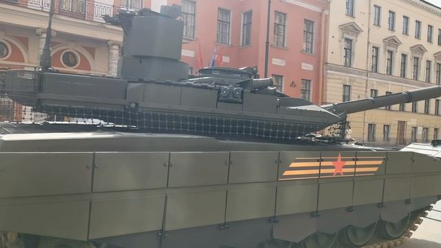 Разгрузка танка Т-90 в центре Санкт-Петербурга.