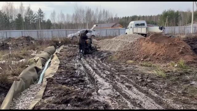 Осушение участка. Прифундаментный дренаж с выпуском в существующую канаву. г.Великий Новгород.