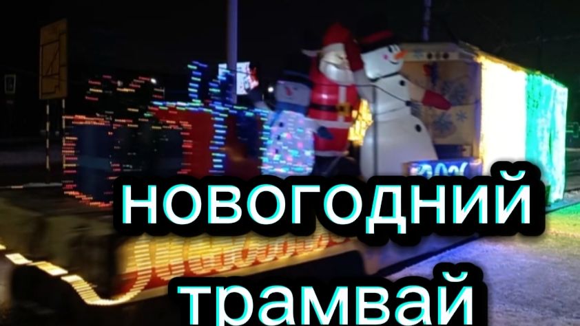 Новогодний красивый трамвай . В нашем городе