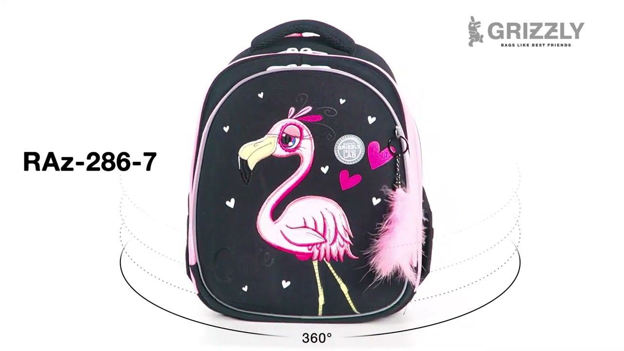 Школьный ранец для девочек RAz-286-7 с фламинго от GRIZZLY