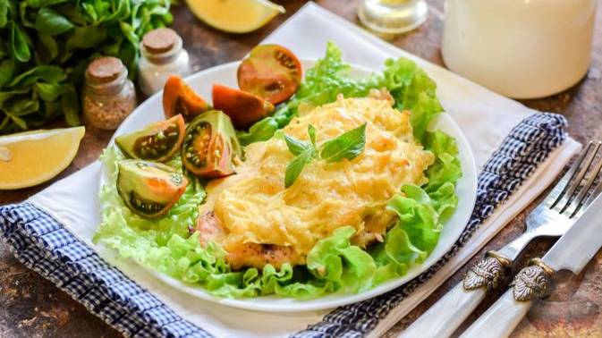 Праздничная порционная подача. КУРИЦА ПОД КАРТОФЕЛЬНО-СЫРНОЙ ШУБКОЙ