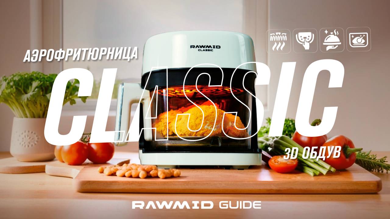 Хотите узнать, как эффективно использовать все функции аэрофритюрницы и готовить самые вкусные блюда? Смотрите полный гайд Аэрофритюрницы RAWMID Classic RCA-01. В этом видео мы подробно разбираем все режимы аэрофритюрницы RCA-01, показываем на примерах, как готовить курицу, картошку фри, котлеты, рыбу, тосты, выпечку и даже фруктовые чипсы! Вы увидите, насколько удобен информативный дисплей, как легко менять настройки вручную и пользоваться встроенными подсказками. Узнаете секреты панировки для хрустящей корочки, лайфхаки для снижения количества масла и советы по приготовлению полезных закусок. А ещё мы покажем дополнительные аксессуары, которые идут в комплекте с прибором, и расскажем, как ухаживать за ним. Аэрофритюрница RAWMID Classic RCA-01 – https://00w.in/zFMog Обзор на лучший аэрогриль 2025 | RAWMID Classic RCA-01 Аэрофритюрница со стеклянной чашей – https://00w.in/Z9iTQ Хрустящие куриные ножки и крылышки в панировке. Рецепт в домашних условиях в аэрогриле RAWMID RCA-01 – https://00w.in/KkcGx Шоколадный брауни без сахара — ПП рецепт брауни без сахара и без масла с бананом в аэрофритюрнице – https://00w.in/8Rpzk Книга рецептов RAWMID в подарок – https://madeindream.com/novosti/form.html Следите за нашими соцсетями – в них будут публиковаться новости о конкурсах и акциях! Instagram /rawmid VK https://vk.com/rawmid Телеграм https://t.me/rawmid Подписывайтесь на наш канал! Следите за регулярным обновлением рецептов и идей, как улучшить жизнь с помощью техники RAWMID Другая техника мечты RAWMID https://madeindream.com/ Мы осуществляем быструю доставку по России, Казахстану, и странам СНГ. ☎ Позвонить СПб +7 (812) 244-91-75 МСК +7 (495) 777-52-21 Написать: info@rawmid.com ----- СОТРУДНИЧЕСТВО: Мы открыты к разным формам сотрудничества. Напишите нам на info@rawmid.com