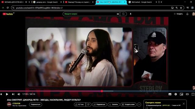 Джаред Лето - Вампир? Почему он не стареет ? В чём секрет молодости? Лидер культа потребляющий гаввах, секс и деньги? В этом ролике я обсуждаю ниже следующие ролики и сериалы: 1) ролик - Вампир? Почему не стареет Джаред Лето? В чём секрет молодости? 2) ролик - Alex СМОТРИТ: ДЖАРЕД ЛЕТО - ЗВЕЗДА, НАСИЛЬНИК, ЛИДЕР КУЛЬТА? 3) Сериал - Не сработало (2022) ======================== Дисклеймер: Данное видео создано только с целью развлечения и автор не преследует цели никого оскорбить или унизить. Все сказанное является только личным субъективным мнением - сплетни, фантазии и рассуждения автора.