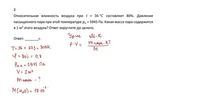 10 кл тест влажность воздуха часть 2 задача 2