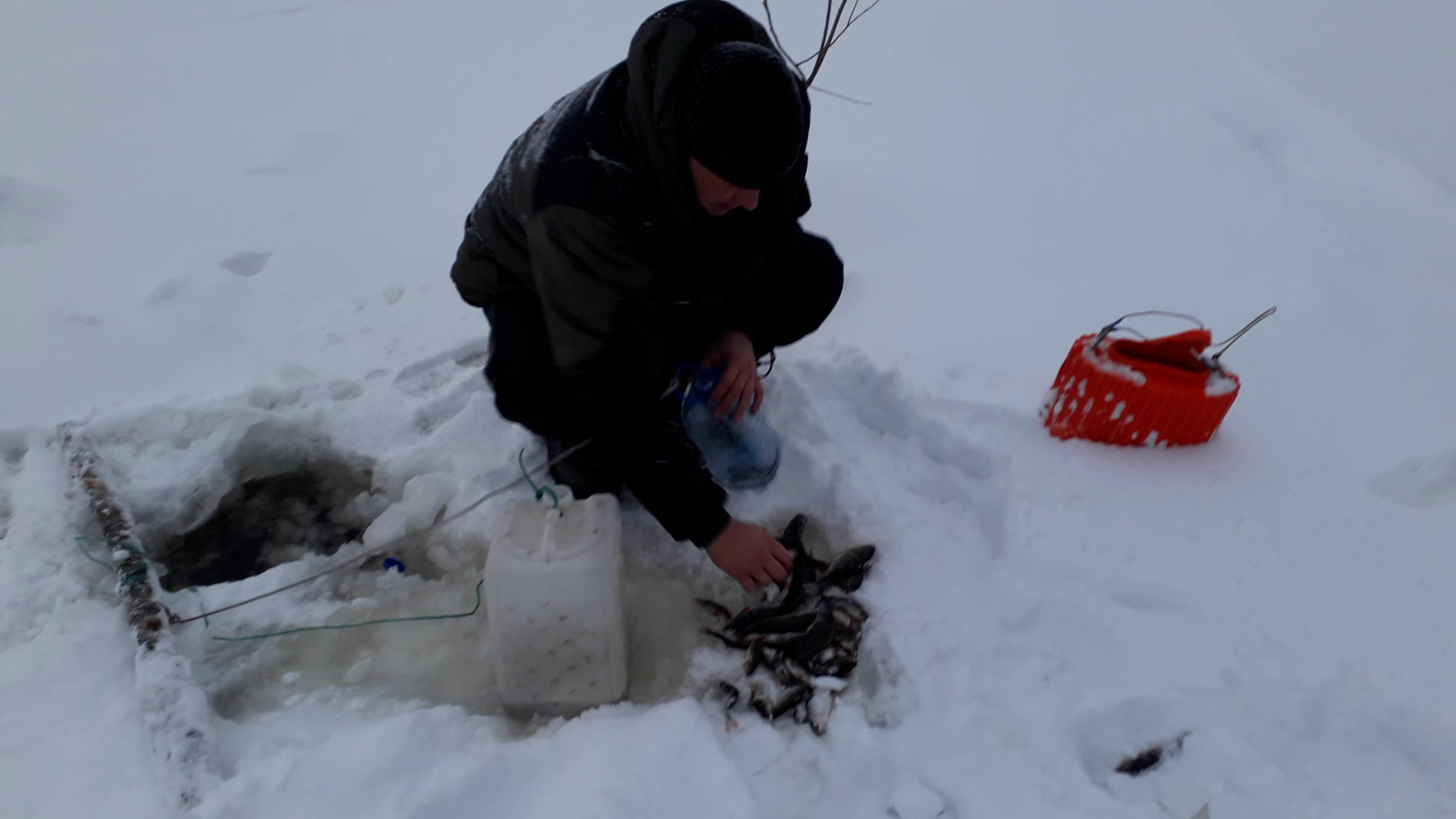 Очередной выезд на рыбалку в снежную погоду. Река нас встретила зимними красотами. Ловим на жерлицы, ловим живца.