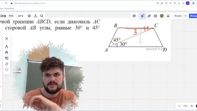 Найдите больший угол равнобедренной трапеции ABCD, если диагональ. Понял геометрию после просмотра!