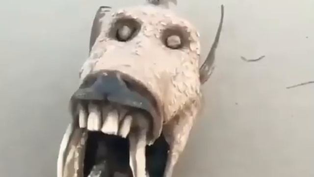 Рыбаки нашли страшную рыбину. Согласно догадкам экспертов, рыба была определенно глубоководная - обитала на глубине нескоЛЬКИХ километров, куда не достают лучи света. На это в некоторой степени указывают рудиментарные глаза рыбы, которые вряд ли что-то видят. Многих заинтересовал факт, что глаза подводного монстра посажены не по бокам, а спереди. Огромные зубы, скорее всего, позволяли чудищу охотиться даже на китов, откусывая небольшие части тела. Существо 100% являлось суровым хищником, отметили эксперты.
