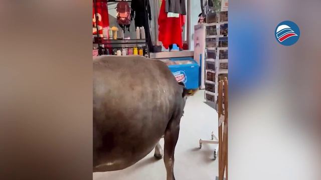 Необычная встреча: корова в спортивном магазине на горнолыжном курорте