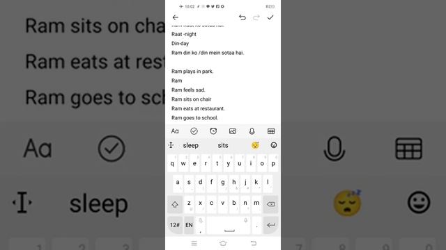 Простое настоящее время Ram sota hai raat ko - Рам спит ночью Ram raat ko sotaa hai - Рам спит ночью Raat - Ночь Din - День Ram din ko sotaa hai - Рам спит днём Ram din mein sotaa hai - Рам спит днём Ram park mein khelta hai - Рам играет в парке Ram udas mehsoos karta hai - Рам грустит Ram kursi par baithta hai - Рам сидит на стуле Ram khaata hai restaurant mein - Рам ест в ресторане Ram restaurant mein khaata hai - Рам ест в ресторане Ram vidyalaya jaata hai - Рам ходит в школу