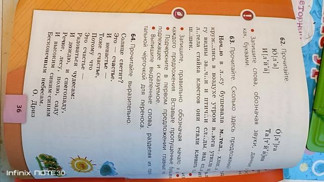 В.П. Канакина, В. Г. Горецкий РУССКИЙ ЯЗЫК 2 класс 2 часть, стр. 36 упражнение 63. ОТВЕТЫ.