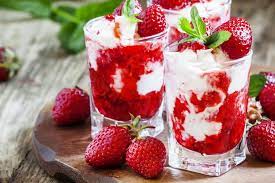 Ингредиенты: Безе - 100 г Клубника - 300 г Сливки 33 % - 250 мл Сахарная пудра - 1 ст.л.