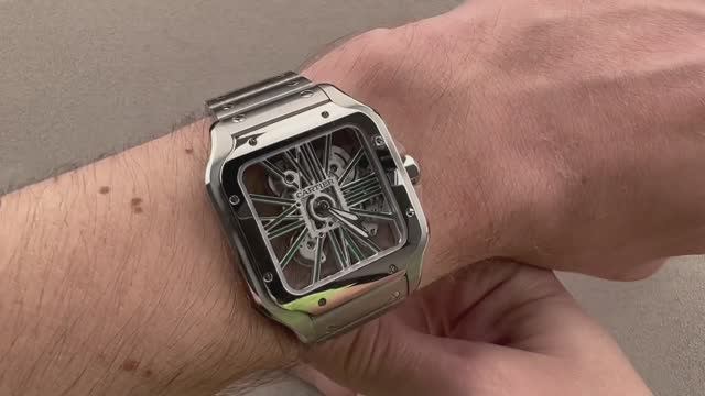 *перевести видео можно в Яндекс браузере Корпус часов Cartier Santos de Cartier WHSA0028 выполнен из нержавеющей стали толщиной 39,8 мм и обрамлен каркасным циферблатом на браслете из нержавеющей стали. Часы и минуты являются отличительными чертами часов Cartier Santos de Cartier. Толщина этих часов Cartier также составляет 9,1 мм, а расстояние от выступа до выступа составляет 47,6 мм. Для получения более подробной информации ознакомьтесь с полным обзором Cartier Santos de Cartier.