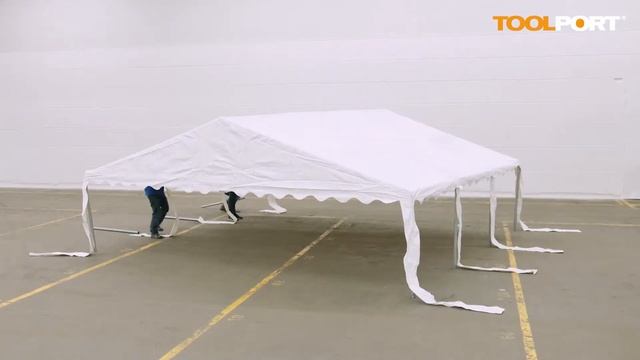 This video shows the assembly of a TOOLPORT 6x6 m Professional Storage Tent. For further information check our website: https://www.toolport.de/