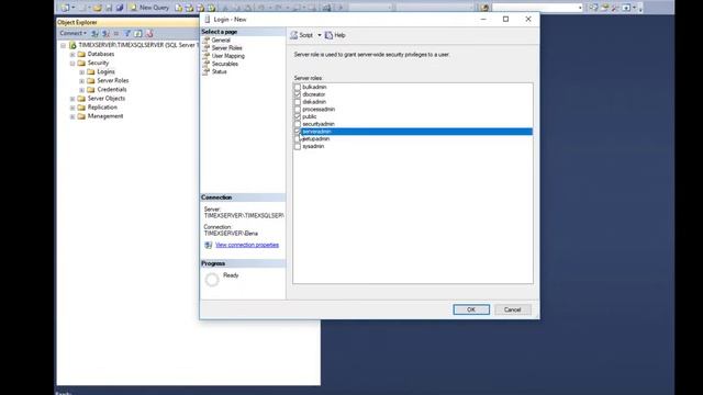 Создание SQL пользователя для программы Timex.