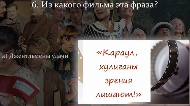 Несомненно, одними из самых любимых зрителями кинокартин, являются фильмы советского периода. Именно они с большим удовольствием цитируются, пересматриваются по несколько раз и никогда не надоедают. Приглашаем вас принять участие в нашей киновикторине "Крылатые фразы советского кино" и вспомнить легендарные цитаты из любимых фильмов!