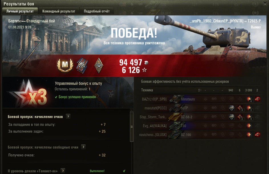 БЕРЛИН МАСТЕР на T26E5 Patriot ОПЫТ: 1317 УРОН: 3099