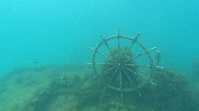 Пробую себя во фридайвинге (нырянии без акваланга). Погрузился на затонувший на глубине 12 метров торпедный катер возле мыса Меганом, Крым, Чёрное море.