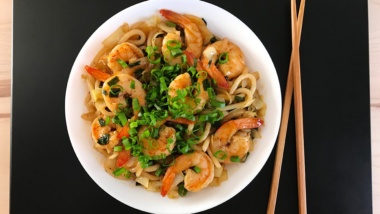 Лапша удон с креветками. Советую делать две порции!