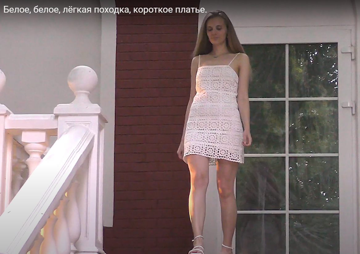 Белое, белое, лёгкая походка, короткое платье.