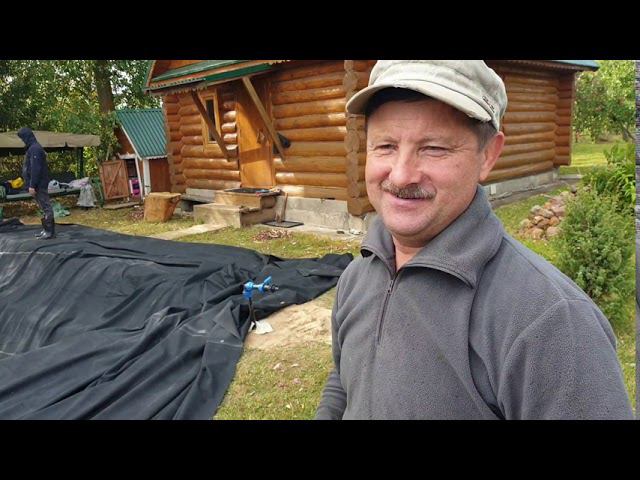 В гостях у Дяди Сережи, говорим о строительстве пруда своими руками, этапы работ, стоимость матералов, конструкция, декор. Пруд из каучукового покрытия. Эко пруд без филттрации.