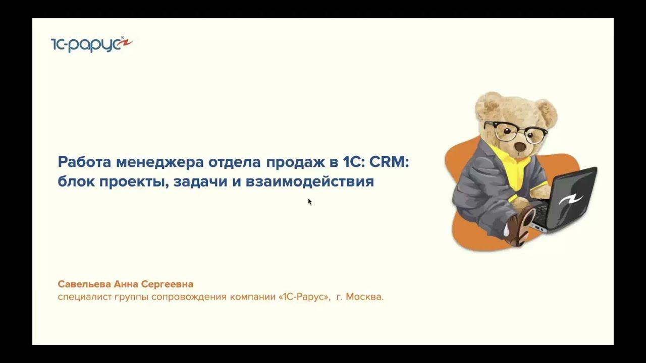 Работа менеджера отдела продаж в 1С:CRM: блок проекты, задачи и взаимодействия - 26.05.2022
