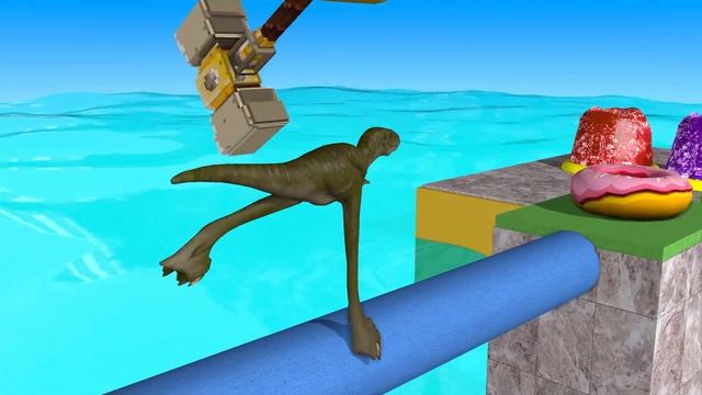 Толстые животные проходят препятствия - детский конте