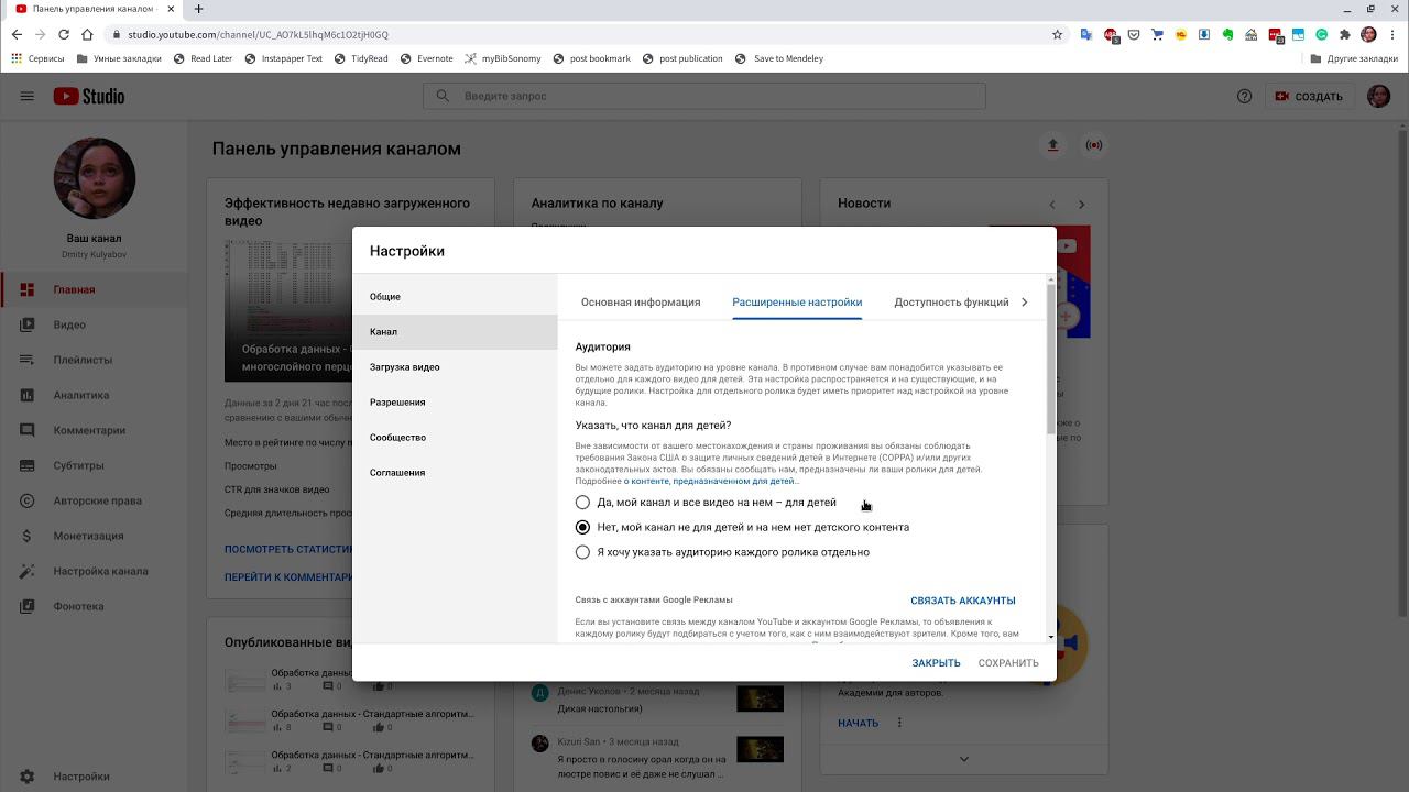 Настройки youtube.com для загрузки файлов