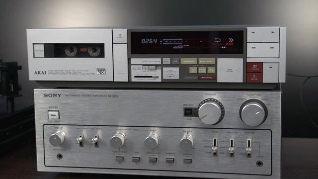 AKAI GX-R6 ¥64,800(1983年頃) Высококачественное звучание, высококлассная модель. Реверс, поиск по паузам и многое другое. Дека на видео подключена к усилителю SONY TA-3650, усилитель подключен к акустическим системам Boston A400. アカイ伝統のリバース技術と、トータルアドバンスデッキで培われた技術を投入して開発されたクイックリバースデッキ。 メカニズム部には、リバースデッキで実績のあるバイ・カウンターキャプスタンドライブ方式の走行メカを基礎に、精密さを追求したBSP(Bi-directional Symmetrical Precision)メカニズムを開発・搭載しています。 ヘッドの左右にフォワード/リバースそれぞれ専用のキャプスタンシャフトとピンチローラーを設け、両方向での録再条件が同一となるシンメトリカルなテープ走行システムを実現しています。 リバース時にはピンチローラーがシーソー運動をして、瞬時に走行反転し、同時にヘッドも180度回転し、往復ともLch/Rchは同一のヘッドギャップ、アンプを使用して録音再生します。 これにより往復の走行特性、録再条件の変化を少なく抑え、A面からB面へ音のブランクをほとんど感じさせないハイクオリティのオートリバース録音が可能です。 ヘッド部には、アカイのそれまでの技術蓄積をベースに、ロータリー式の信頼性とつきつめた、Accurate:Reverseヘッドシステムを開発・搭載しています。 まず、精度が要求されるハウジング部には、通常の亜鉛ダイキャストより2倍の硬度と8倍の耐摩耗性を示す、ベリリュウム配合の亜鉛ダイキャストを採用し、μオーダーの精密加工を施しています。 回転部には滑りのよいフッ素系樹脂を主体とする固体潤滑剤を精密コーティングし、摩擦係数を大幅に下げ、耐久性を向上しています。 また、ストッパー部には高硬度セラミック(純度99%アルミナ)を採用し、ヘッドの回転に伴う衝撃100kg/cm2に対して22,000kg/cm2と余裕のある強度を実現しています。しかも、ストッパーを受けるアジマス調整ネジには、ステンレス鋼に焼き入れ処理を施したファインスクリューを採用しており、回転時の衝撃をステンレスの弾性で吸収すると同時に、摩耗を追放しています。 さらに、長期間使用で問題となる調整ネジの緩みには、ダブルナット方式で対処しており、ネジの戻りをロックしています。 また、機械的耐久性・信頼性をさらに生かすため、従来ロータリー式で問題となっていたヘッドからアンプへのリード線に、ロールアップフレキシブルプリントボードを採用しており、ヘッド部分で螺旋状に巻上げる事で断線やからみつきによる回転不良を防いでいます。 そして、回転方式は二つのギアで確実に行う専用モーターによるダブルピニオン駆動を採用しています。 テープガイドには、ヘッドから左右に分離独立させ、テープとの接触面を広くとったアカイ独自のデュアルワイドテープガイドを採用しています。これにより、カセットハーフの狂いから生じるアジマスずれやテープのカールを防ぎ、BSPメカニズムと相まってテープ走行をさらに安定化しています。 また、マイコン制御の専用カムモーター駆動によるクワイエットメカニズムにより、メカ音を抑え込んでいます。 ヘッドには、ツインフィールド・スーパーGXヘッドを搭載しており、さらにコイル線材に純度99.99%の無酸素銅線(OFC)を新たに使用し、音質のクリアネスをさらに高めています。 ツインフィールド・スーパーGXヘッドは、一つのヘッドハウジングに録音、再生専用に2つのヘッドギャップを設け、3ヘッドに迫る性能を持たせたもので、コイル線材の改良によってさらに特性向上を実現しています。 ノイズリダクションシステムとして、ドルビーBタイプに加え、より高いノイズ低減効果を持つドルビーCタイプを搭載しています。 ブランクサーチシステムを搭載しており、ワンタッチで3分間以上の未録音部分を探し出し、自動的に前に録音した曲の終了地点まで巻戻して、4秒間のミュート録音の後、録音スタンバイとなります。 また、レックキャンセル機構を搭載しており、気に入らない曲やCMなどを誤って録音した時に、ワンタッチでミス録音の頭へ巻戻し、ミュート録音をした後、録音スタンバイとなります。 ワンタッチで収録曲のイントロを10秒間ずつスキップ再生するイントロスキャンを搭載しています。 ワンタッチで次の曲/現在の曲の頭を探し出すIPLS(自動頭出し)を搭載しています。 録音レベルコントロールに新開発の電子ボリュームを採用しています。 マイコンでボリューム変化を行う方式により、経年劣化によるボリューム・ノイズ発生がなく、精度の高いコントロールが可能です。 ステップ数は16で、ワンタッチでワンステップずつ増減し、押し続けると連続的に変化します。 12セグメントのVU表示バーメーター、4デジット電子カウンター、RECレベル、リバースモード、ノイズリダクションの種類、テープポジション、