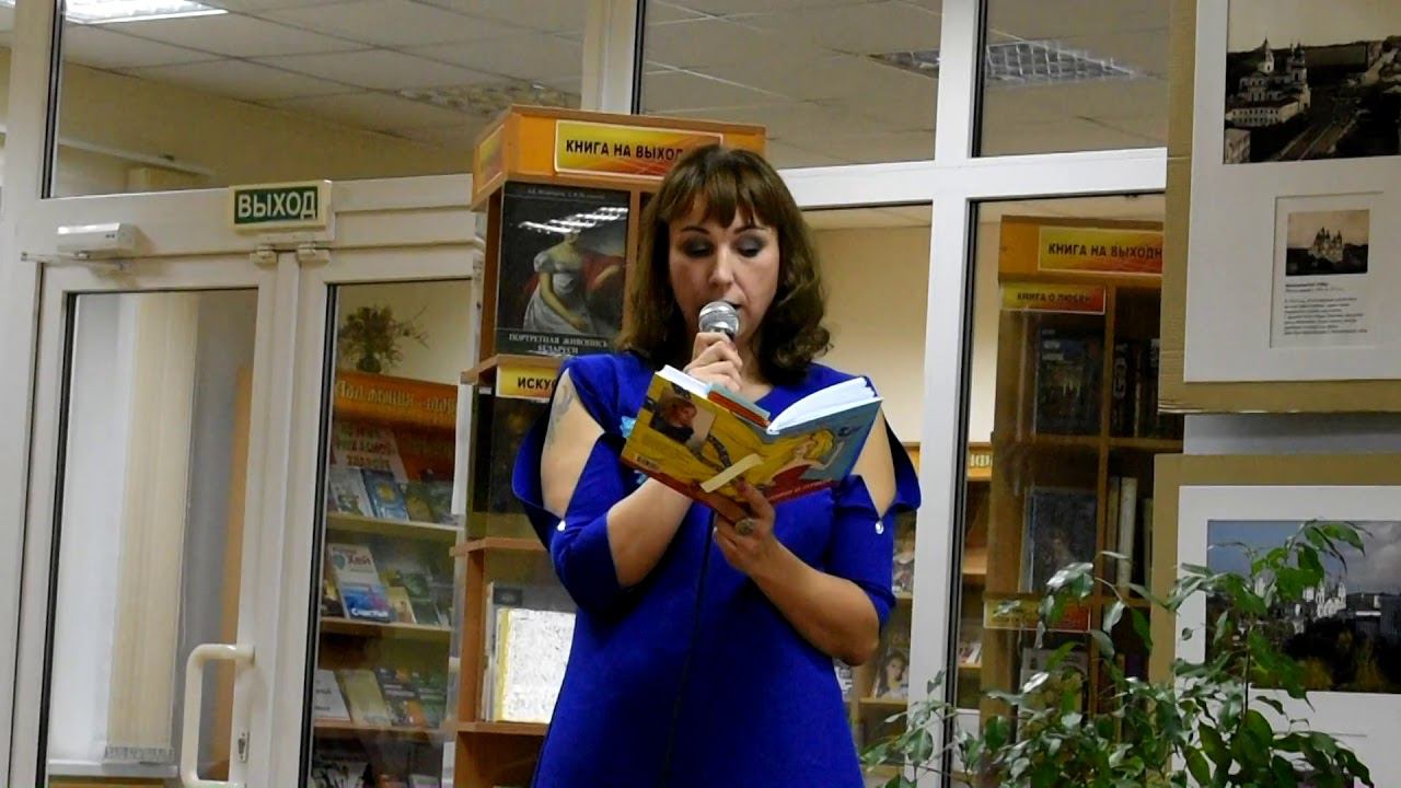 Фрагмент презентации сборника поэзии Людмилы Дунец "Женщина и птица", Витебск, Центральная городская библиотека имени Максима Горького.