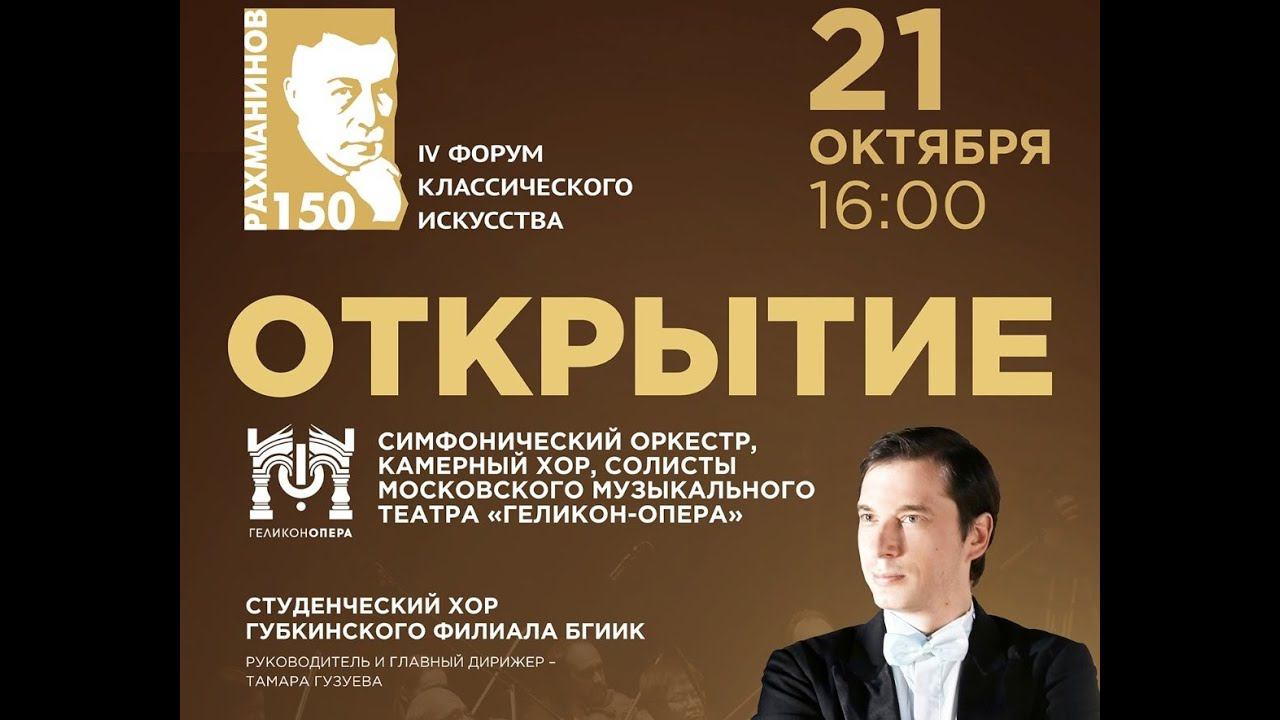 Симфонический оркестр, камерный хор, солисты московского музыкального театра "Геликон-опера" 12 октября в Старом Осколе стартует IV Межрегиональный Форум классического искусства, посвященный в этом году выдающемуся русскому композитору, пианисту, дирижеру С.В. Рахманинову. Это событие инициировано Детской школой искусств № 5 города Старый Оскол. Торжественное открытие пройдет 21 октября в Старом Осколе во Дворце спорта «Аркада», где выступит всемирно известный коллектив «Геликон-опера», который исполнит оперу С. Рахманинова «Алеко» при участии 160 артистов и симфонического оркестра Геликон-оперы, учащихся детских школ искусств и колледжей Белгородской области. 22 октября в сопровождении симфонического оркестра Геликон-оперы под руководством Валерия Кирьянова выступит обладатель золотой медали Международного конкурса им. П.И. Чайковского Сергей Давыдченко. поддержать автора https:// www.donationalerts.com/r/zvezdniyden #рахманинов #геликонопера #классическоеискусство