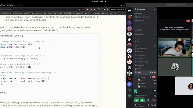 Watch live at https://www.twitch.tv/drnekoma To get in touch with interesting books, we are recording our encounters about books we read. Book: https://buildyourownlisp.com/ Organization: https://github.com/Dr-Nekoma Discord Server: https://discord.gg/THUBv2QRz3