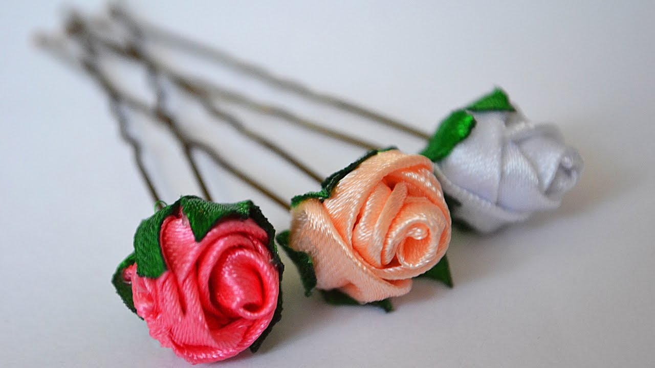 Заколки Шпильки для волос с розами. Канзаши МК.