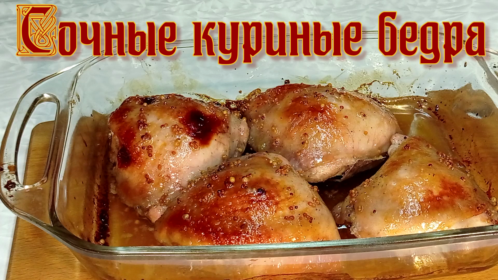Сочные куриные бедра, рецепт рецепты, рецепты простые, рецепты быстрые Сочные куриные бедра в духовке Бедра 4 шт. Горчица 1,5 ч. л. Лимонный сок 1 ст. л. Оливковое масло 2 ч. л. л. Мед 3 ч. л. Черный перец 0,5 ч. л. Солить по вкусу Готовка: Вымойте бедра, положим в миску, добавьте горчицу, лимонный сок, перец, соль, мед. Все перемешать и мариновать 1 час, можно оставить на ночь. Перекладываем маринад бедра в форму для запекания. Выпекать 50 мин. при 180 градусах до золотистого цвета. Приятного аппетита!