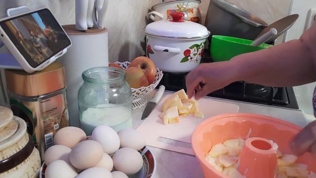 Готовлю шарлотку,хлеб испёкся