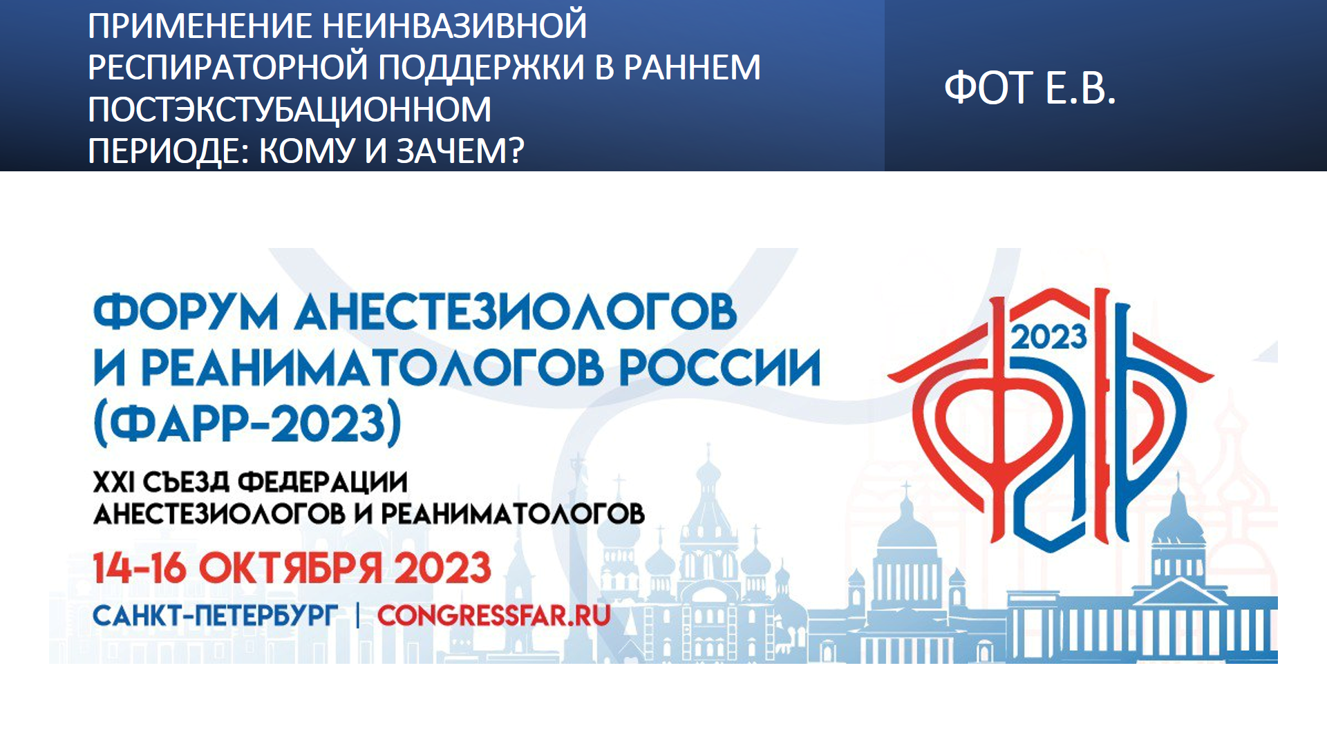 Видеозапись ФАРР-2023, XXI съезд Федерации анестезиологов и реаниматологов 14-16 октября 2023, Санкт-Петербург. Евгения Владимировна Фот "Применение неинвазивной респираторной поддержки в раннем постэкстубационномпериоде: кому и зачем?"