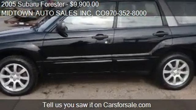 MIDTOWN AUTO SALES INC 651 28TH ST in GREELEY, CO 80631 Come test drive this 2005 Subaru Forester 2.5 XS (1-OWNER) for sale in GREELEY, CO. http://www.midtownautosalesinc.com CARFAX 1-OWNER, ALL WHEEL DRIVE, AUTOMATIC. NO DEALER HANDLING CHARGES. NO DEALER HANDLING CHARGES. THIS VEHICLE COMES WITH A CARFAX BUY BACK PROTECTION CERTIFICATE. Option List:4WD/AWD,ABS Brakes,Air Conditioning,Alloy Wheels,AM/FM Radio,Anti-Brake System: 4-Wheel ABS,Automatic Headlights,Body Style: SPORT UTILITY 4-DR,Cargo Area Cover,Cargo Area Tiedowns,Cargo Length: 37.80 in.,Cargo Volume: 32.00 cu.ft.,CD Changer,CD Player,Child Safety Door Locks,Cruise Control,Curb Weight-automatic: 3150 lbs,Curb Weight-manual: 3105 lbs,Daytime Running Lights,Depth: 33.70 in.,Driver Airbag,Driver Multi-Adjustable Power Seat,Engine Type: 2.5L H4 SOHC 16V,Fog Lights,Front Air Dam,Front Brake Type: Disc,Front Headroom: 39.80 in.,Front Heated Seat,Front Hip Room: 51.60 in.,Front Legroom: 43.60 in.,Front Shoulder Room: 53.50 in.,Front Side Airbag,Front Side Airbag with Head Protection,Front Spring Type: Coil,Front Suspension: Ind,Fuel Economy-city: 22 - 23 miles/gallon,Fuel Economy-highway: 28 - 30 miles/gallon,Full Size Spare Tire,Ground Clearance: 7.50 in.,Heated Exterior Mirror,Interval Wipers,Keyless Entry,Leather Steering Wheel,Limited Slip Differential,Load Bearing Exterior Rack,Locking Differential,Maximum GVWR: 4150 lbs,Maximum Payload: 1045 lbs,Maximum Towing: 2400 lbs,Overall Height: 65.00 in.,Overall Length: 175.20 in.,Overall Width: 68.30 in.,Passenger Airbag,Passenger Volume: 93.50 cu.ft.,Power Adjustable Exterior Mirror,Power Door Locks,Power Windows,Rear Brake Type: Disc,Rear Headroom: 39.80 in.,Rear Hip Room: 51.60 in.,Rear Legroom: 33.70 in.,Rear Shoulder Room: 53.60 in.,Rear Spring Type: Coil,Rear Suspension: Ind,Rear Window Defogger,Rear Wiper,Second Row Folding Seat,Skid Plate,Standard GVWR: 4150 lbs,Standard Payload: 1045 lbs,Standard Seating: 5,Standard Towing: 2400 lbs,Steering Type: RandP,Steering Wheel Mounted Controls,Tachometer,Tank: 15.90 gallon,Tilt Steering,Tilt Steering Column,Tires: 215/60R16,Track Front: 58.90 in.,Track Rear: 58.50 in.,Turning Diameter: 34.80 in.,Wheelbase: 99.40 in.,Width at Wall: 54.30 in.,Width at Wheelwell: 37.00 in.,4 Door,All Wheel Drive,Antilock Brakes,Automatic Transmission,Bucket Seats,Center Console,Cloth Seats,Driver Air Bag,Heated Mirrors,Heated Seats,Luggage Rack,Passenger Air Bag,Power Mirrors,Power Seats,Power Steering,Premium Wheels,Rear Defrost,Trip/Mileage Computer Provided by Carsforsale.com http://video.carsforsale.com/vehiclevideo.aspx?vid=199122279