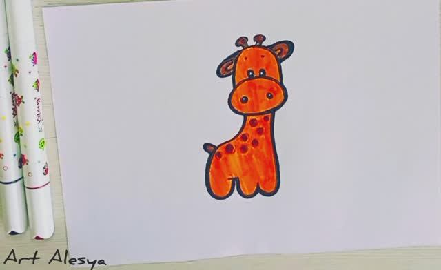 Как нарисовать милого жирафа ребенку!