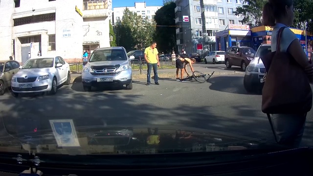 В Санкт-Петербурге зазевавшийся велосипедист врезался в припаркованную машину, а затем распылил газовый баллончик в лицо владельцу автомобиля. Противостояние попало в объектив камеры регистратора. #разборки #велосипедист #питер #врезался