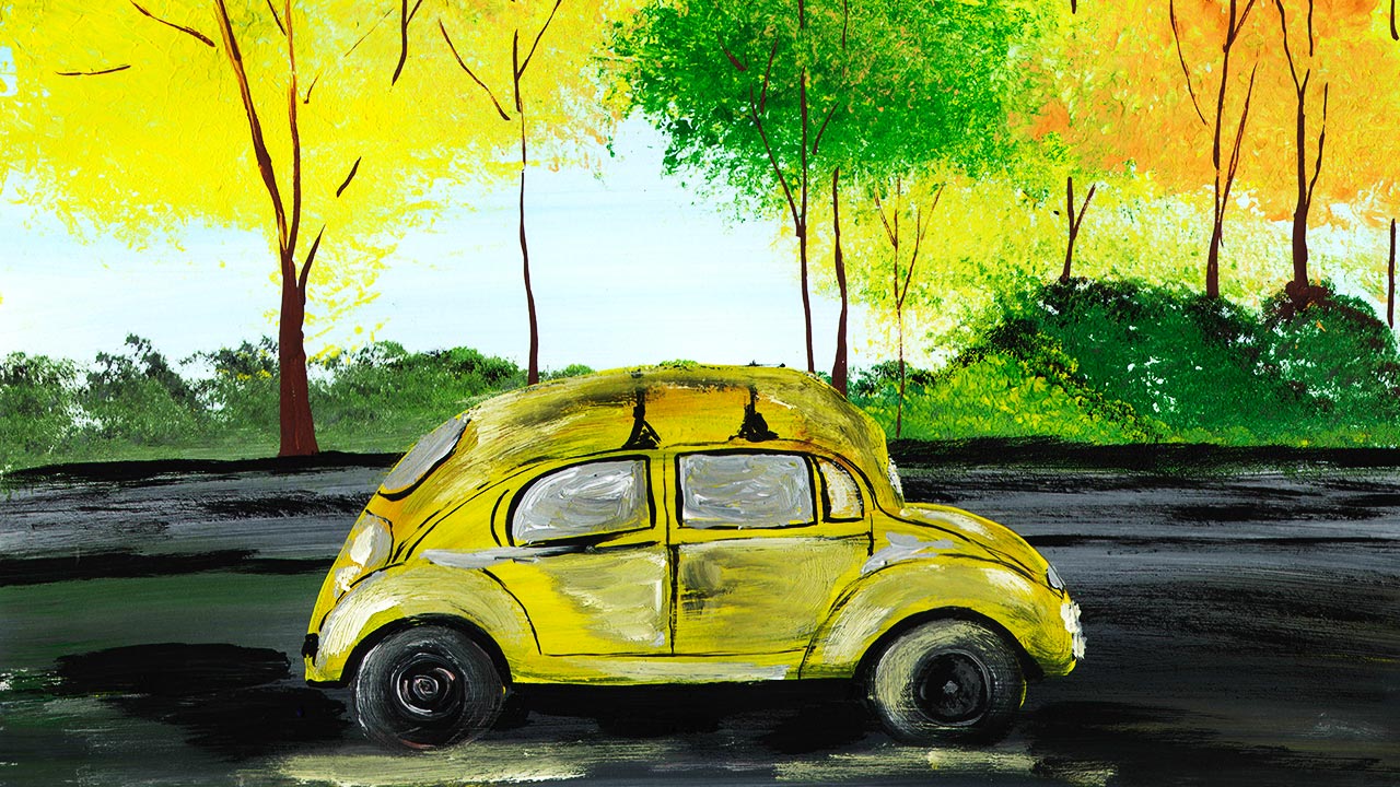 Интерьерная картина, машина в городе. Рисуем осенний пейзаж. Картина для интерьера, осень.