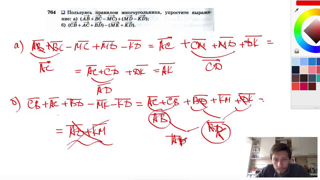 №764. Пользуясь правилом многоугольника, упростите выражения: а) (АВ + ВС -МС) + (MD-KD); б) (СВ+АС +BD) - (MK+KD). Мой второй канал для подготовки к ЕГЭ и ОГЭ - https://www.youtube.com/ЕвгенийСумин Инстаграм - https://www.instagram.com/EGE_OGE.math Личный инстаграм - https://www.instagram.com/ee_sumin VK - https://vk.com/evgeniysumin FB - https://www.facebook.com/EvgeniySumin