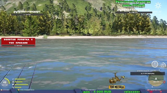 Поддержка донатом https://new.donatepay.ru/@1032463 Альтернативный донат https://www.donationalerts.com/r/kalyamba11 5536913964533059 карта Тинькоф Если стрим лагает,смотри стрим на трово https://trovo.live/s/Kalyamba_na_Ribalke Мой ВК - https://vk.com/kalyantv НИК в игре kalyan11 НАШ ДИСКОРД СЕРВЕР https://discord.gg/3ZeEDGs5h6 Заказ водоема на 1 час - 500р ( весь стрим 2500р ) Модерка на канале 1300р ( каждая следующая на 100р больше) Озвучка доната на 40р,50р,100р,200р,300р,500р,1000р ✅Призы в рулетке "ЗОЛОТАЯ" ✔ ЗОЛОТО ✔ ПРЕМ ✔ КАТУШКИ ЮБИЛЕЙНАЯ БОРЕЛИКА, ВЕНГИ, ТАЙГА, СИЛЬВЕР 80, И другие ✔ ПАЛКИ ПИЛКЕРНАЯ, ДОНКА МОРСКИЕ, ✔ РОД ПОД, СТУЛЬЯ ✅Призы в рулетке СТАНДАРТ : ✔ катушкИ ЮБИЛЕЙНАЯ БОРЕЛИКА, ВЕНГИ, ТАЙГА, СИЛЬВЕР 80, И другие ✔ катушки 60 для медного ( ЭВИИ, НАТОРЫ, ГОЛДА, и тд) ✔ ПИЛКЕРНОЕ УДИЛИЩЕ КОРОЛЕВА ОКЕАНА ✔ Морское Донное удилище ✔ прем ( 3, 7, 30 дней) ✔ золото ( 1, 3, 5, 10, 20 ,50) ✔ билет на море ( 1, 3, 5 дней) ✔ голд наживка и др. ✅Призы в рулетке "СТАРТОВАЯ" ✔ катушка "silver80" ✔ катушка "БЕЛЫЙ КАЛИБР" ✔ катушка "Черный калибр" ✔ катушка "Протон" ✔ катушка "Нарга 6000" ✔ Набор Фидерист и спинингист ✔ Карповик Фортуна ✔ фидерные удилища ✔ прем, золото, алкашка, наживки и тд P.s Рулетка это не казино, а награда за поддержку стримера. Вечный ТОП ПОДДЕРЖКИ (11.05.2024) 1. Dimon_pokemonchik 119 784 2. Interceptor 75 508 3. Skreb79 71 261 4. une personne 68 619 5. Нарвал77 31 550
