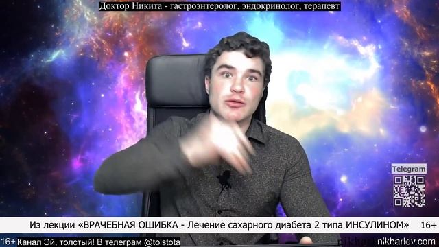 Инсулин и углеводы на фоне болезни митохондрий. Сахарный диабет 2 типа и ожирение — последствия. Знания и взгляды на проблемы диабета 2 типа рождают ощущение: углеводный обмен не может быть нарушен из-за банальной перегрузки углеводами. Слишком много углеводов недостаточно для развития диабета 2 типа. В норме чем больше углеводов сжигается, тем больше стимулируется углеводный обмен веществ. Поэтому очень большое количество потребляемых углеводов может быть ещё мало для поломки углеводного обмена. Тогда получается, что-то должно тормозить нормальный обмен углеводов, их сжигание и усвоение, чтобы организм выбрал альтернативный путь. Он начинает переводить углеводы в жир – часть углеводов усваивается, а другая часть запасается в виде жира. Соответственно глюкоза и триглицериды в крови повышаются. Возникает метаболический синдром. Что-то нарушает работу митохондрий, ломает в них углеводный метаболизм. Митохондрии болеют. Тогда чем больше углеводов съедает человек, тем больше их стоит в очереди на усвоение, они накапливаются в крови, какая-то часть переводится в жиры. Развивается инсулинорезистентность. 📕 Подробно изложено в статье на сайте nikharlov.com «Инсулинорезистентность – количественное или качественное нарушение углеводного обмена?» https://bit.ly/3wzBLMg При инсулинрезистентности глюкоза может быть усвоена с более сильным сигналом от инсулина. Клетки плохо "слышат" и инсулина требуется больше нормального, чтобы они распознали его и взяли глюкозу из крови. Срабатывают какие-то факторы, блокирующие распознавание инсулина. Ступеней в метаболизме глюкозы много, и любая из них может быть заблокирована. Такое торможение углеводного обмена это большой стресс для организма. Усиливается синтез жиров из жирной еды и преобразование глюкозы в жиры. Человек толстеет – ожирение. Усвоение углеводов, инсулин при диабете 2. #Инсулин #Глюкоза #УглеводыИнсулин #СахарныйДиабет #ИнсулинИнсулинорезистентность #УглеводыОжирение #МитохондрииБолезнь ===== Информация в данном видео предоставлена для ознакомления и расширения кругозора. Не является призывом к действию, НЕ заменяет консультации вашего лечащего врача. По вопросам вашего здоровья и возможных действий проконсультируйтесь с вашим медицинским профессионалом. ===== dr nik, doctor nikita, dr nikita, doctor nik, никита харлов ▶️ Полная лекция: Лечение сахарного диабета 2 типа инсулином - ВРАЧЕБНАЯ ОШИБКА. Эндометриоз и поликистоз яичников https://www.youtube.com/watch?v=8AwCZXbh1VE 📘 Альбом: Диабетология. Врачебная ошибка - Лечение сахарного диабета второго типа ИНСУЛИНОМ. https://www.youtube.com/playlist?list=PLMLarg_xd_MoVIaWrJ517tCvZI0EI-SXC 🩸Новый канал Доктора Ника https://bit.ly/DrNikNew ✅ Консультации с доком Никитой https://nikharlov.com/consult/ 💎Сайт Доктор Ник https://nikharlov.com/ 💧Лекция ЭЛЕКТРОЛИТЫ https://bit.ly/Na-K-Cl ❗Лекция: Йод, Се?