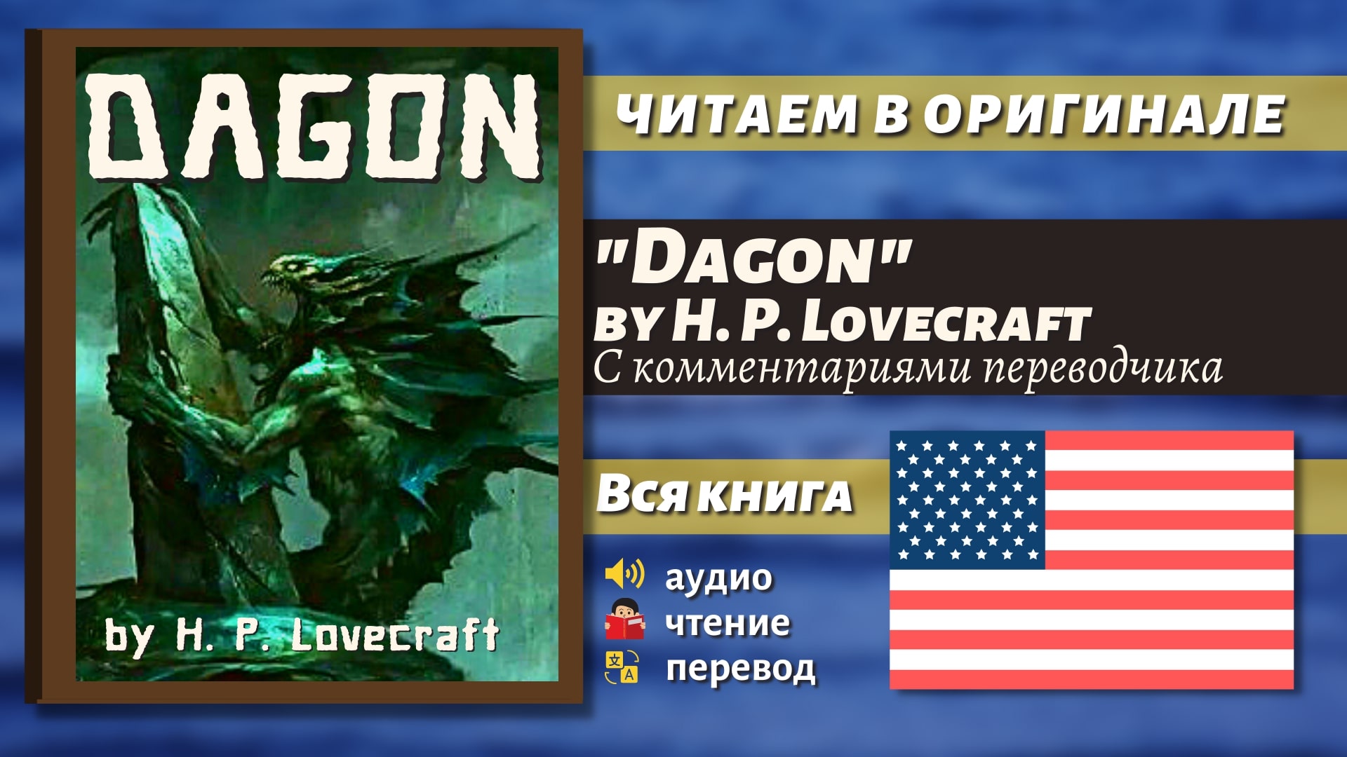 Подробный разбор книги Дагон Г. Ф. Лавкрафт на английском языке с комментарием переводчика. ?ВСЕ ССЫЛКИ НА МЕНЯ ТУТ? https://taplink.cc/votetoang ? Начинать смотреть мои видео удобнее через плейлисты, там все в правильном порядке от легкого к сложному. ПЛЕЙЛИСТЫ: https://www.youtube.com/ВОТЭТО/playlists ??Меня зовут Иван, я лингвист-переводчик ?Окончил МГЛУ (Московский Государственный Лингвистический Университет) по программе перевод и переводоведение c арабским и английским языком ?Нажмите "ПОДПИСАТЬСЯ", чтобы можно было легко найти в своих подписках "ВОТ ЭТО английский" (рядом есть ?, нажмите и на него, чтобы не пропустить прямые эфиры!) Поддержать автора канала "ВОТ ЭТО английский": Сбербанк: 5469 3800 7551 9594 Тинькофф: 5536 9138 3304 8024 Яндекс деньги: 410015133835553 PayPal: https://www.paypal.me/votetoangl #английский